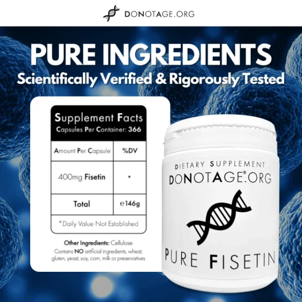 At DoNotAge.org, our mission is to equip your body with the most effective tools found in nature and proven by science. Pure Fisetin reflects that commitment clean, potent, and designed to help your body age on your terms.