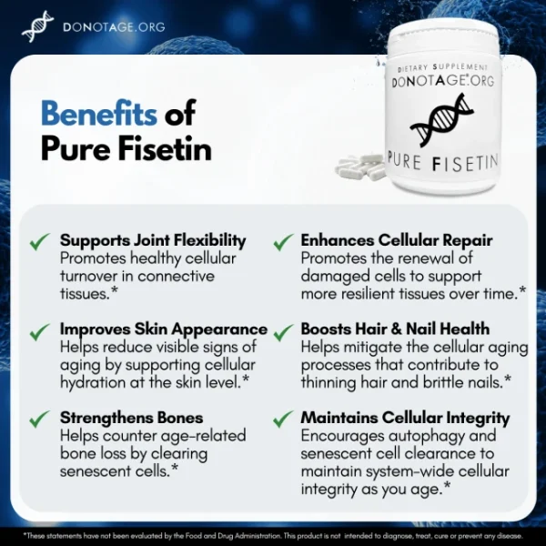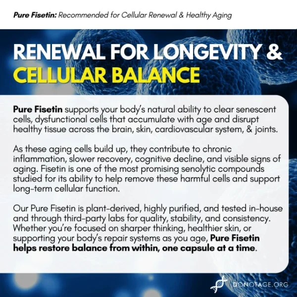 We don’t chase marketing hype. We drive health research forward. Experience the purity, precision, and proven science that define Pure Fisetin from DoNotAge.org.