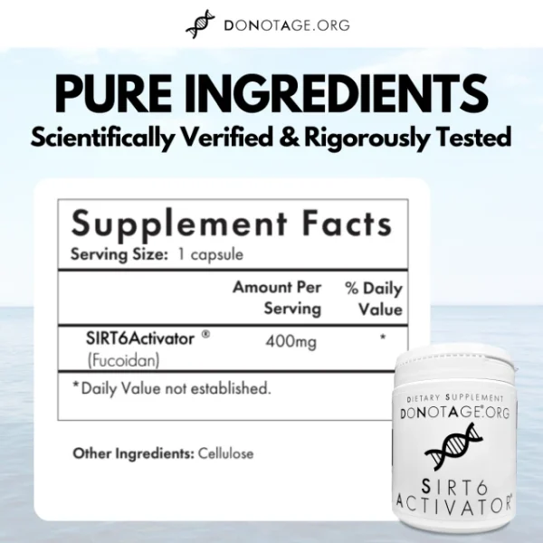 At DoNotAge.org, we focus on scientifically validated compounds that support and enhance SIRT6 activity, ensuring optimal cellular function at every stage of life. SIRT6Activator®, derived from the specialized seaweed species Fucus vesiculosus, has been studied for its ability to naturally increase SIRT6 expression, promoting cellular stability and overall health.