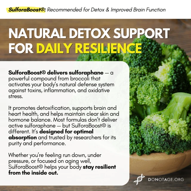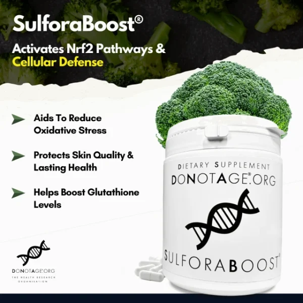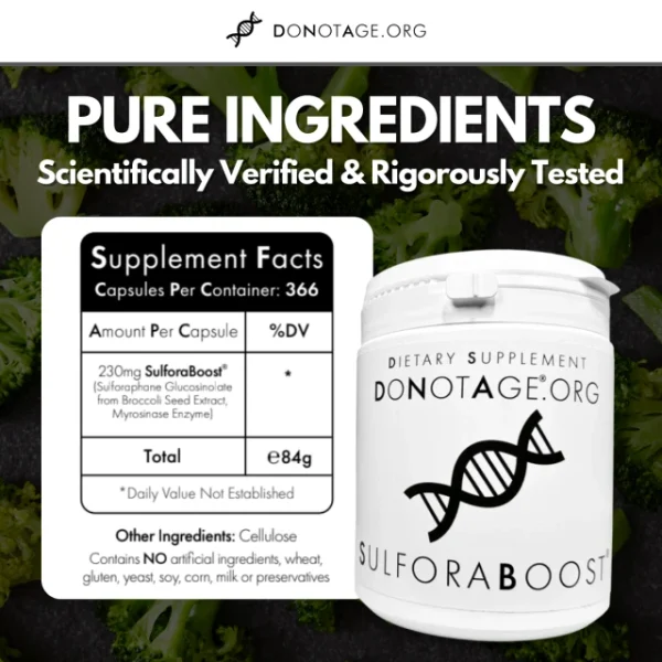 At DoNotAge.org, we don’t just keep up with health science, we lead it. SulforaBoost® is formulated with naturally derived broccoli seed extract and active myrosinase, delivering sulforaphane in its most effective, bioavailable form. Unlike typical sulforaphane supplements that lack the enzyme required for activation, SulforaBoost® contains both components ensuring your body can produce and utilize sulforaphane exactly as nature intended.