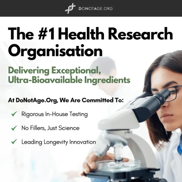At DoNotAge.org, we are a Health Research Organisation dedicated to advancing the science of cellular health through rigorous investigation, testing, and research-leading ingredient development. While most brands chase trends and market shortcuts, we focus solely on purity, bioavailability, and clinical relevance because that’s what the science demands.